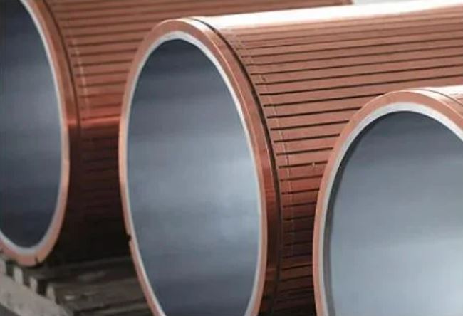 銅管厚度10-25mm ,水縫式冷卻,冷卻強(qiáng)度大,冷卻均勻,鑄坯質(zhì)量好,出結(jié)晶器坯殼厚,不易漏鋼。適合澆注普碳鋼、低合金、高中碳、合金鋼、不銹鋼等多種鋼種。